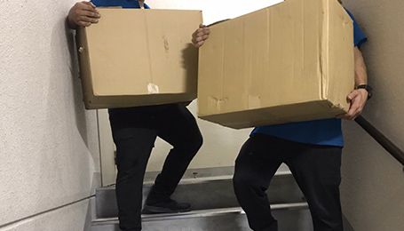 家具などのお引越しの荷物、大量の不用品もスタッフが運びますので安心してお任せください。上階や狭い場所からの搬出もスタッフが現場の状況に応じて最適な方法で安全に運び出します。